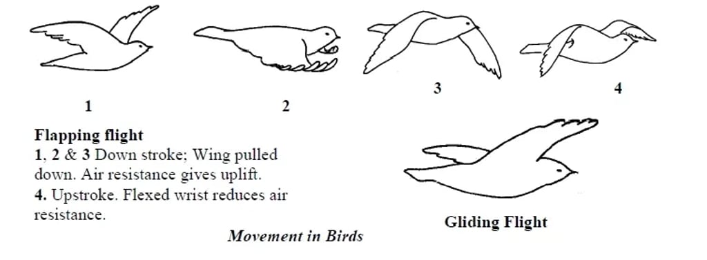 wing is bent at the wrist during the up-stroke thus reducing the resistance.