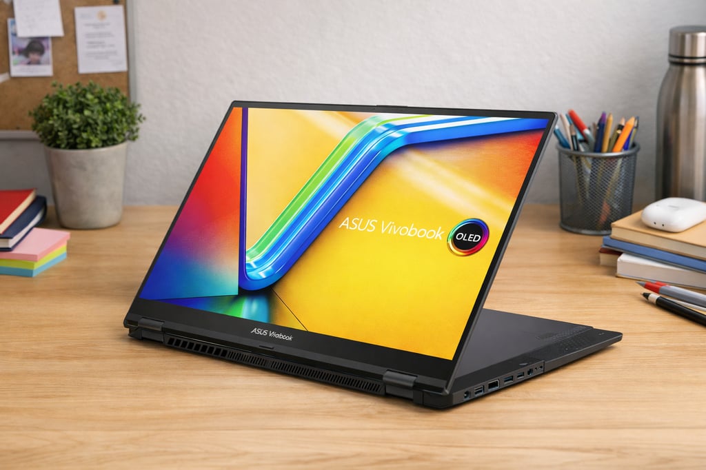 - Compare Specifications: For each candidate, check the CPU, RAM, and storage. As a student, at least 8GB RAM (16GB better) and a Core i5/AMD Ryzen 5 are advisable for smooth multitasking. SSDs (NVMe if possible) ensure fast performance. Consult expert reviews to see real-world benchmarks. (For instance, LaptopMag’s testing shows the Vivobook 16 Flip’s Core Ultra 7 scored ~10987 on Geekbench 6laptopmag.com, indicating strong performance.)